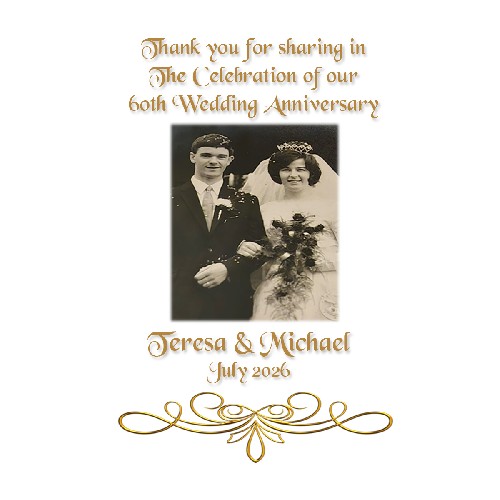Personalised Wedding Anniversary Favour Candle - 50th Anniversary - Champagne Glasses & Photo